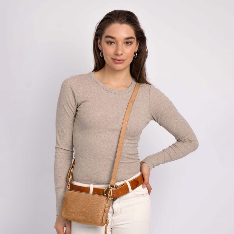 Matser │ Mini Leather Crossbody Bag - Camel
